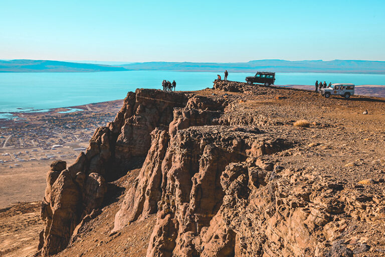 Esta actividad comienza cuando los pasamos a buscar por cada uno de los hoteles en los vehículos 4×4 para dirigirnos hacia la Estancia Huyliche y después atravesar una huella por la montaña durante 2hs hasta llegar a unos 950 msnm en la cima del cerro llegando a los Balcones de El Calafate.